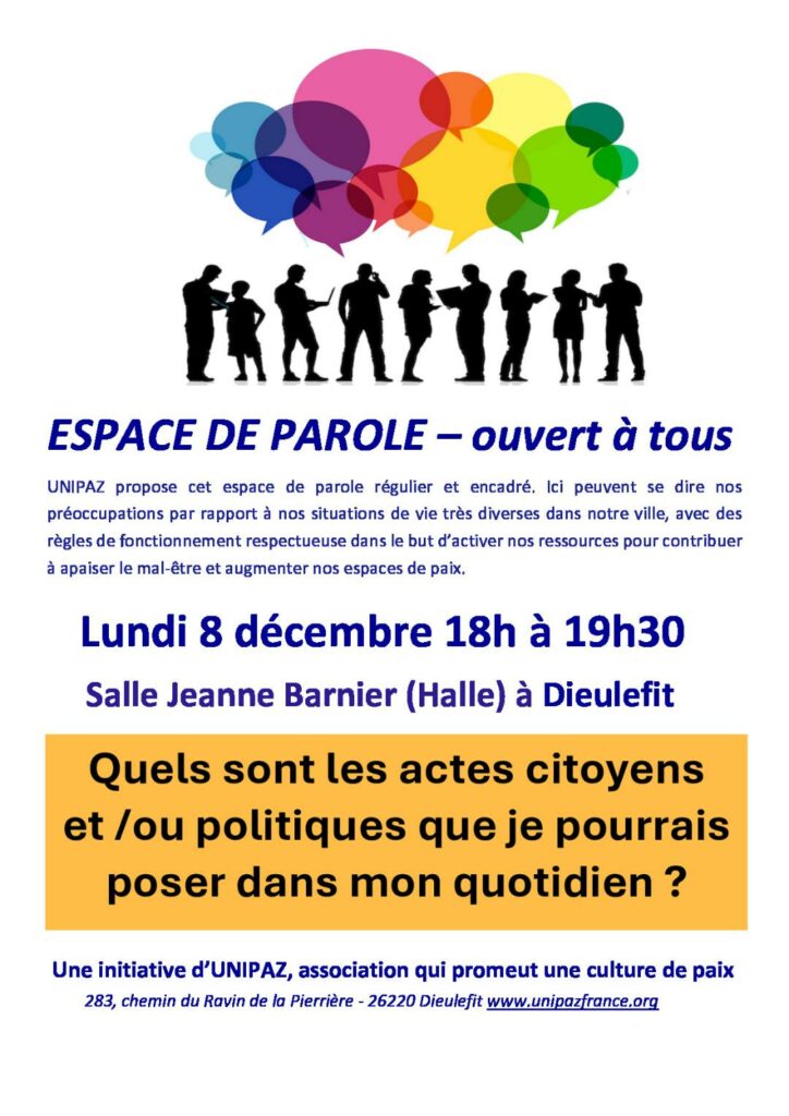 Si vous ne pouvez vous rendre à l’un des RV proposés, n’hésitez pas à prendre un petit moment, seul-e ou avec des proches, pour faire silence au nom de la paix avec l’humanité…